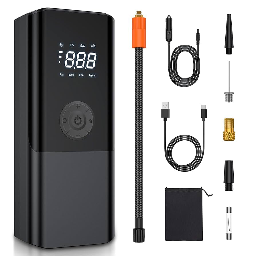 Gonfleur plus rapide : la pompe à air pour pneus sans fil 5 V est dotée d'une puce de performance de mouvement en cuivre intégrée, une pompe à air GrJyls avec une sortie maximale de 150 PSI, qui peut gonfler les pneus rapidement. Des trous de refroidissement denses double face et un ventilateur rotatif intégré améliorent considérablement la vitesse de refroidissement. Fonctionne avec la plupart des pneus et une autonomie puissante : livré avec la batterie rechargeable intégré de 2000 mAh, aucune alimentation nécessaire. Parfait pour gonfler les voitures, motos, vélos, ballons et autres objets gonflables, y compris les véhicules à énergie nouvelle. 4 modes prédéfinis et affichage numérique : 4 types de modes de gonflage prédéfinis (vélos, motos, voitures et ballons) et mode de contrôle manuel (3-150PSI). est simple et facile à utiliser. Le grand écran LCD affiche à la fois la valeur de pression en temps réel et la valeur prédéfinie, pratique pour lire et observer l'état de la pression des pneus.