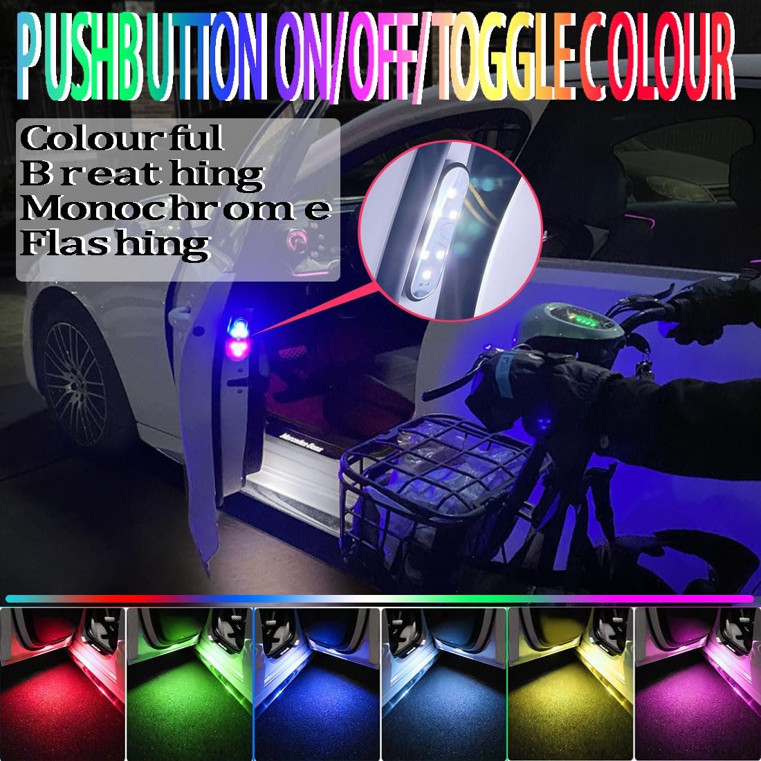 2. Économes en énergie et durables : Économisez de l'énergie avec nos éclairages de portières recyclables. Port de chargement USB et batterie de 500 mAh offrant jusqu'à 69 jours d'autonomie. Rechargez-les à tout moment, profitez d'un éclairage durable et réduisez votre empreinte carbone.