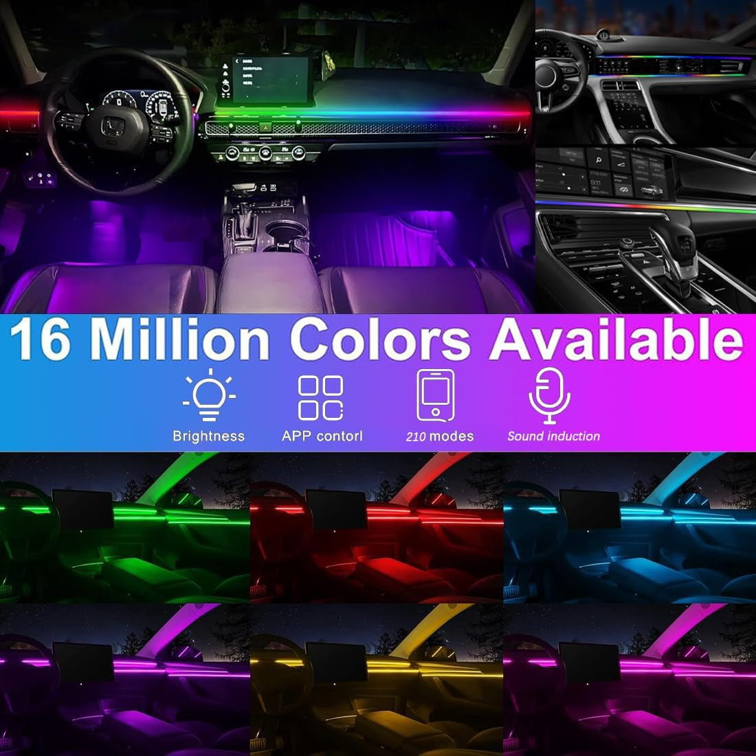 - Possibilités infinies couleurs:Choisissez parmi une palette étonnante 16 millions couleurs et explorez 210 modes couleurs pour correspondre à votre humeur,ou personnalisez les couleurs et réglez la luminosité grâce à la palette couleurs l'application intelligente,ce qui vous permet créer facilement votre propre atmosphère dans la voiture.